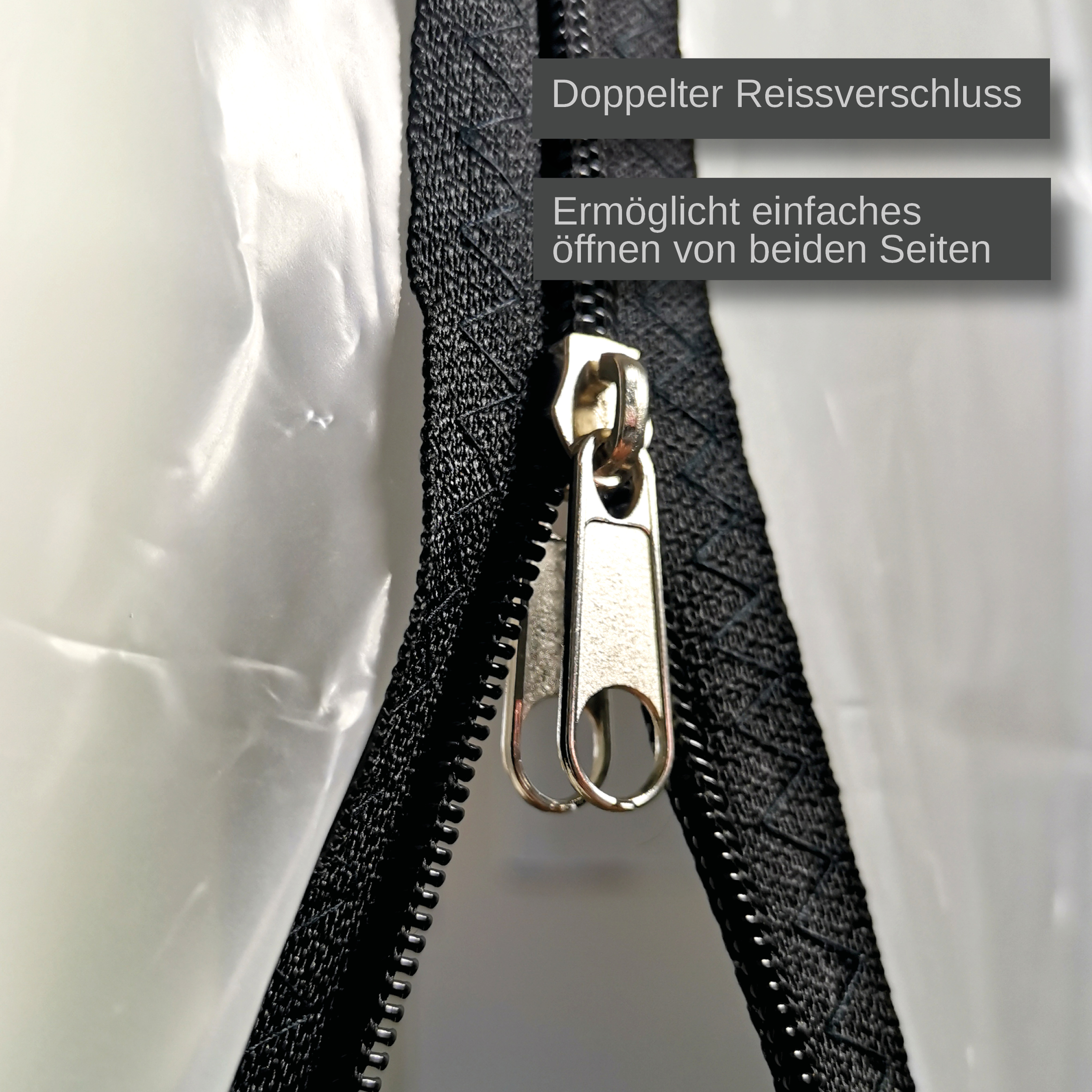 - Die Folie hat eine Stärke von 100my mit einem eingenähtem Reißverschluss
