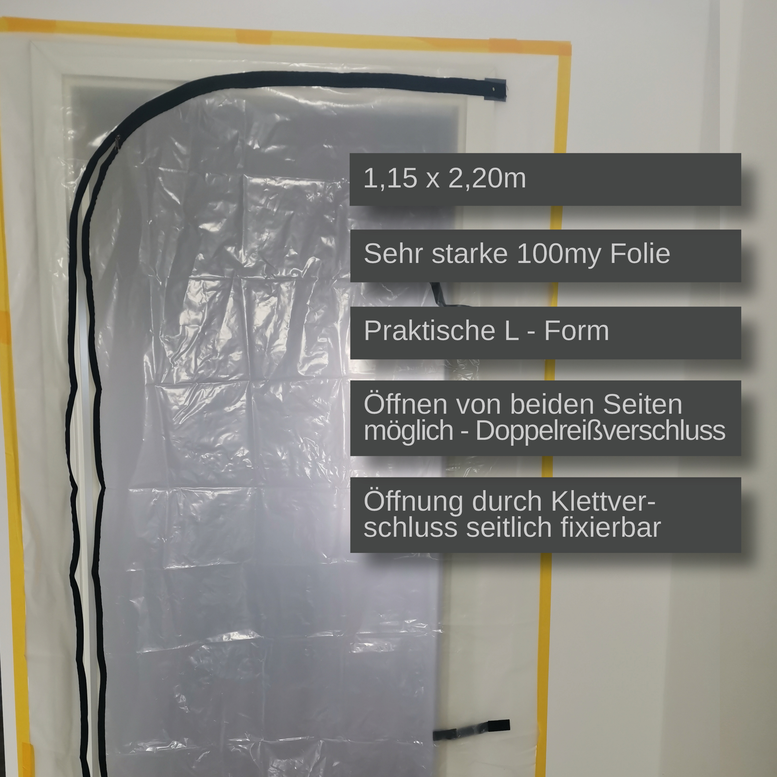 Profi LDPE Staubschutztüre mit Reißverschluss 2,2 x 1,15m